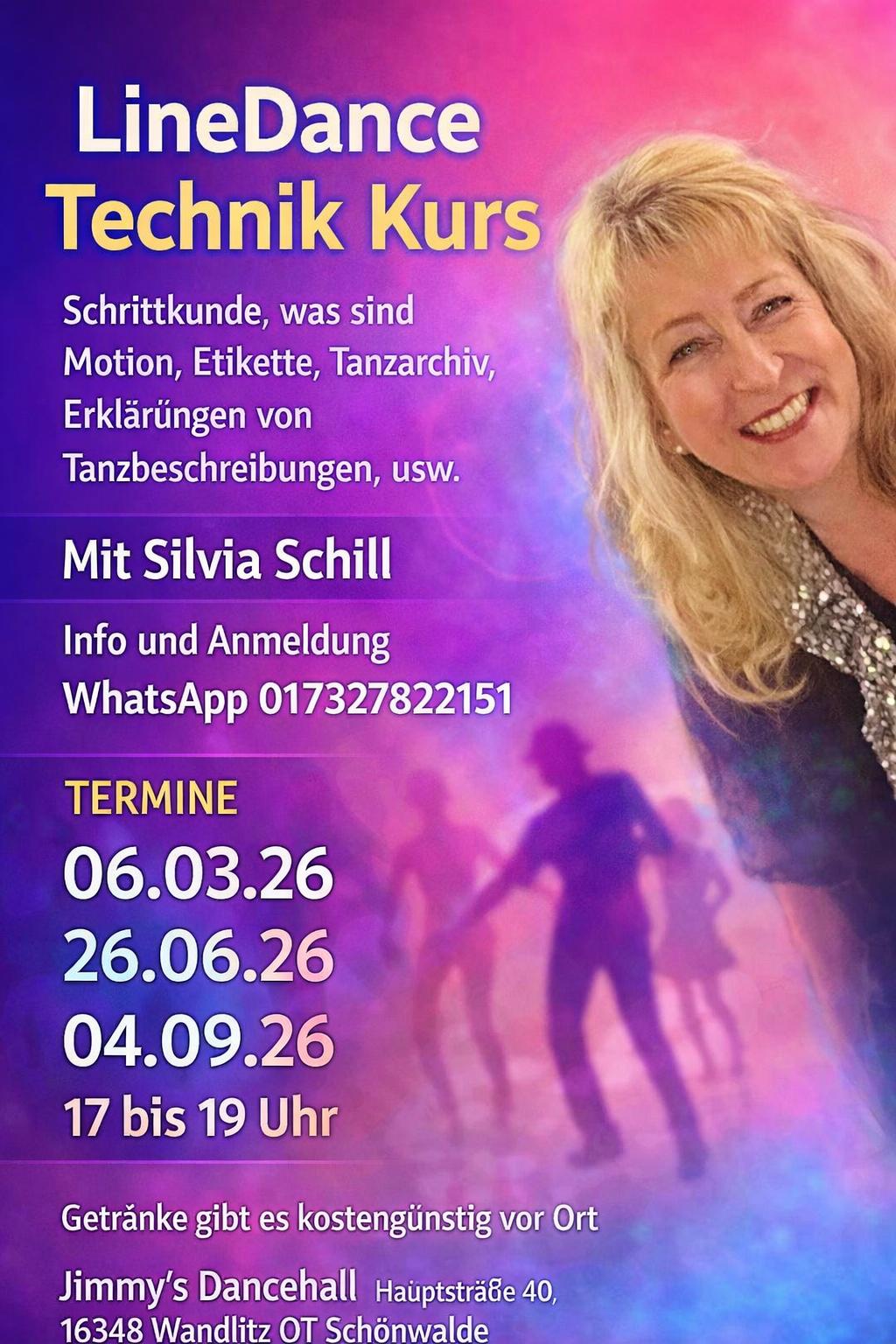 Kontakt: Silvia Schill countrylinedancer@gmx.de Tel: +49 173 2782151 |