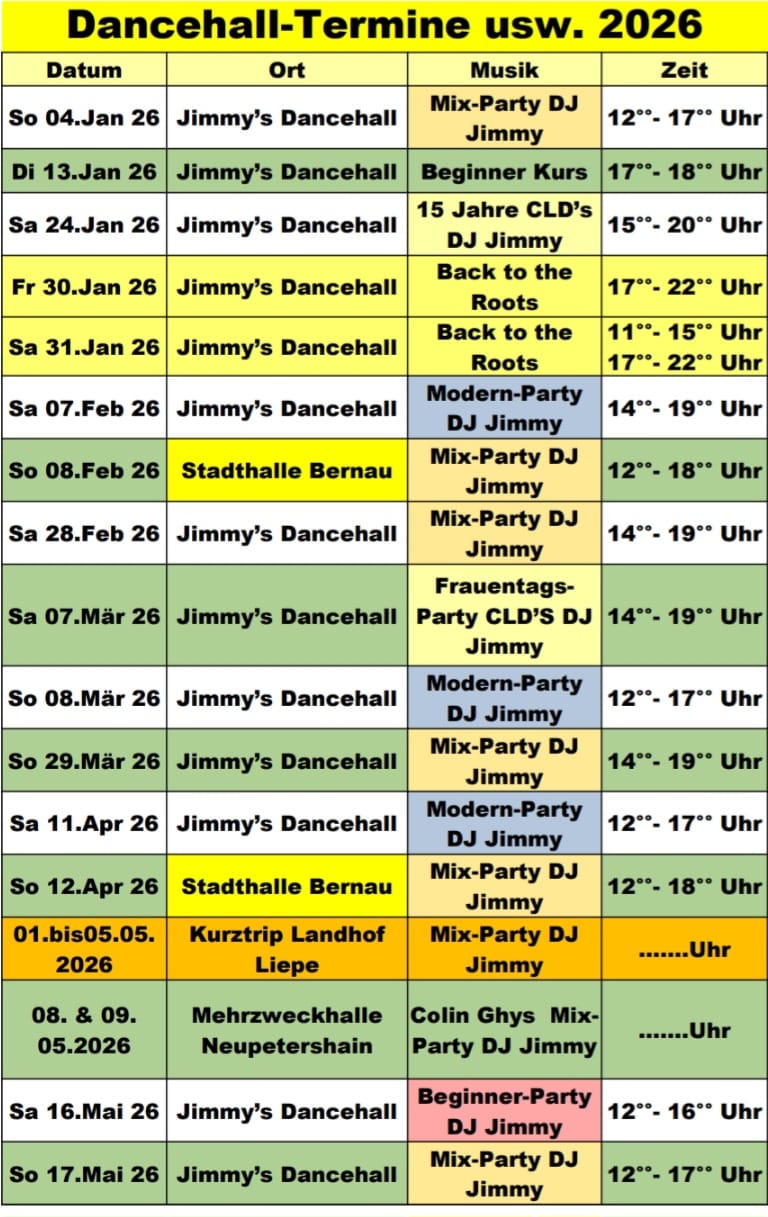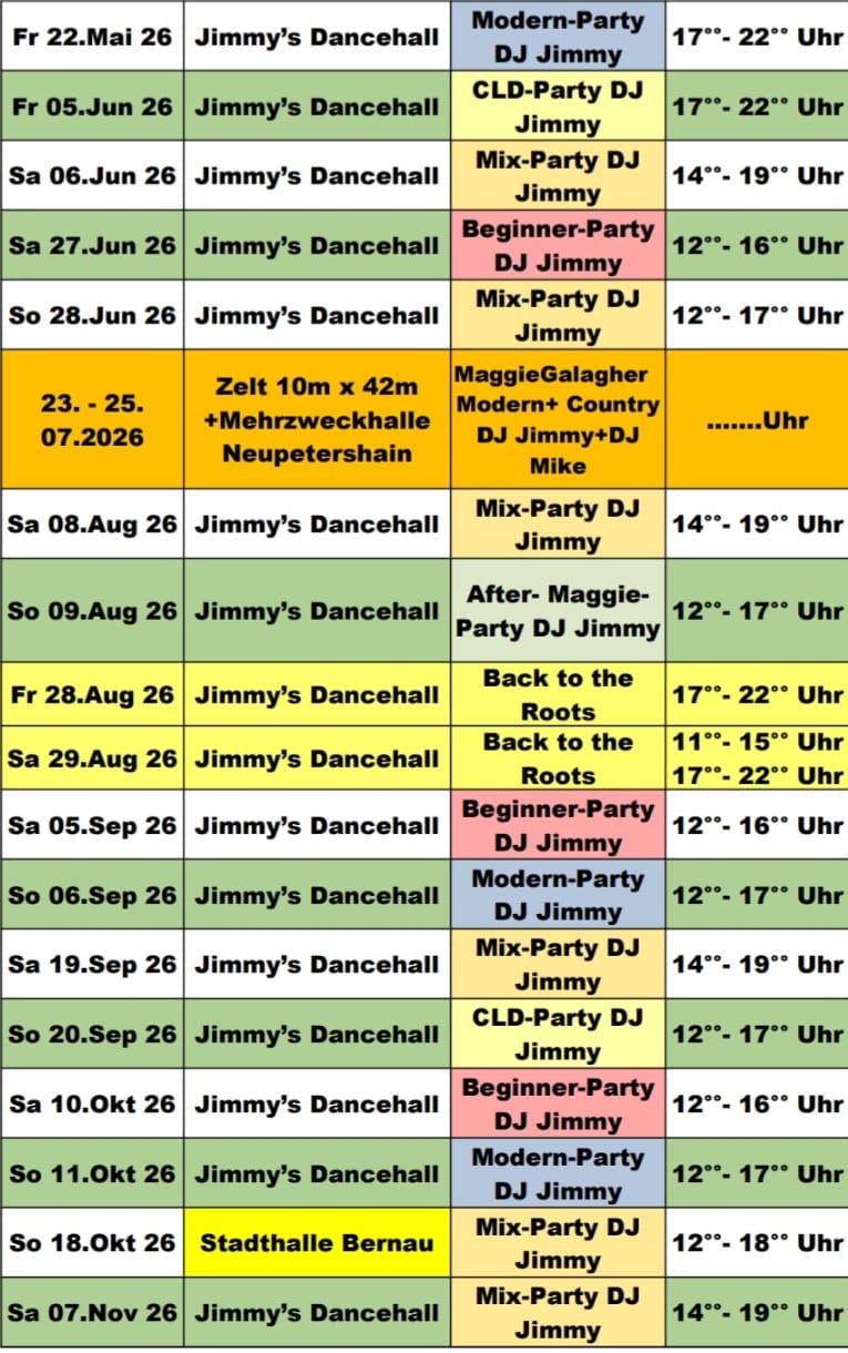 Lieben CLD'S...... hier sind die Termine für 2026 für unsere CLD-Linedancepartys in der Dancehall...... so könnt ihr schon mal planen..... wir freuen uns auf zahlreiche Anmeldungen..... |